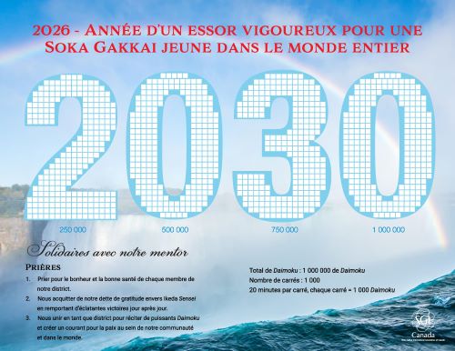 Toward the centennial of the Soka Gakkai’s founding in 2030, we invite you to download and print a daimoku chart, which is available in three languages.