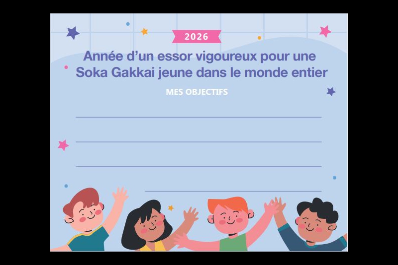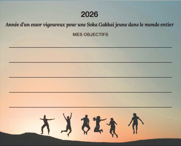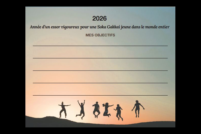 Nous vous invitons à télécharger et à imprimer la grille de Daimoku et les cartes de détermination disponibles sur notre site Web. Elles vous soutiendront dans votre pratique et votre résolution à remporter la victoire en 2026.